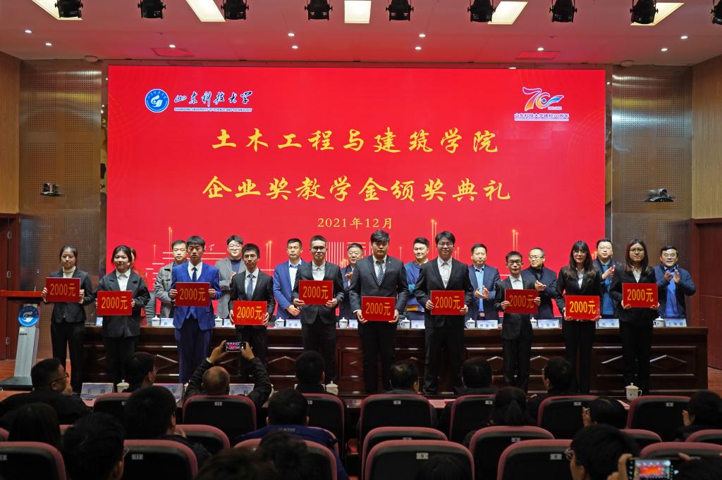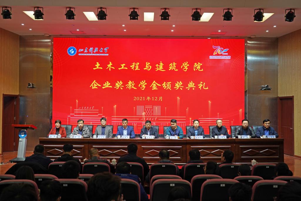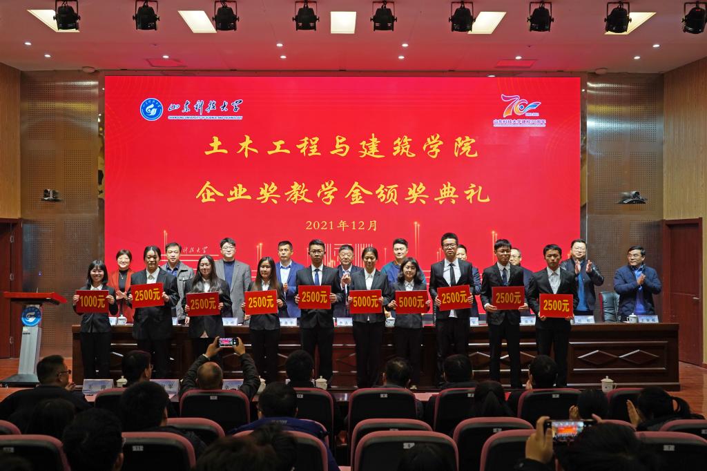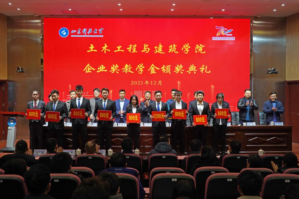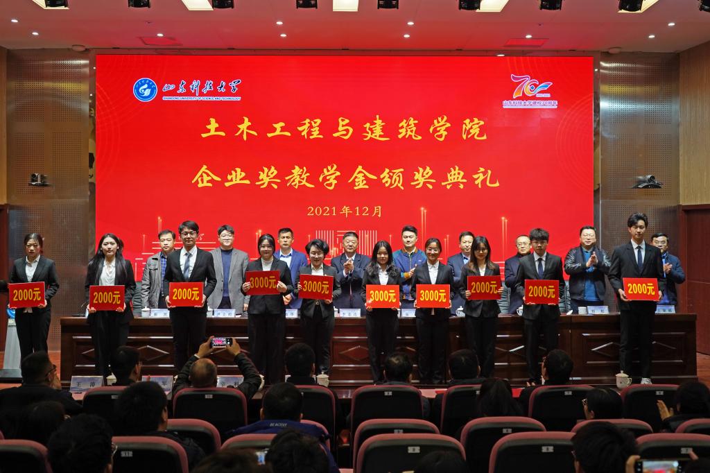 12月19日,pp电子游戏官网企业奖教学金颁奖典礼在J9-144报告厅举行。山东华滨建工有限公司党支部书记李志连、烟台平安信息工程职业技能培训学校校长宋洋、日照市政集团常务副总经理娄善华、山东省路桥集团青岛分公司党总支书记曹建军、校团委书记尹立明、学生工作处副处长靳凯、研究生工作部副部长刘松、合作发展处副处长王荣超、pp电子游戏官网师生代表参加了本次颁奖典礼。典礼由pp电子游戏官网党委副书记高静主持。