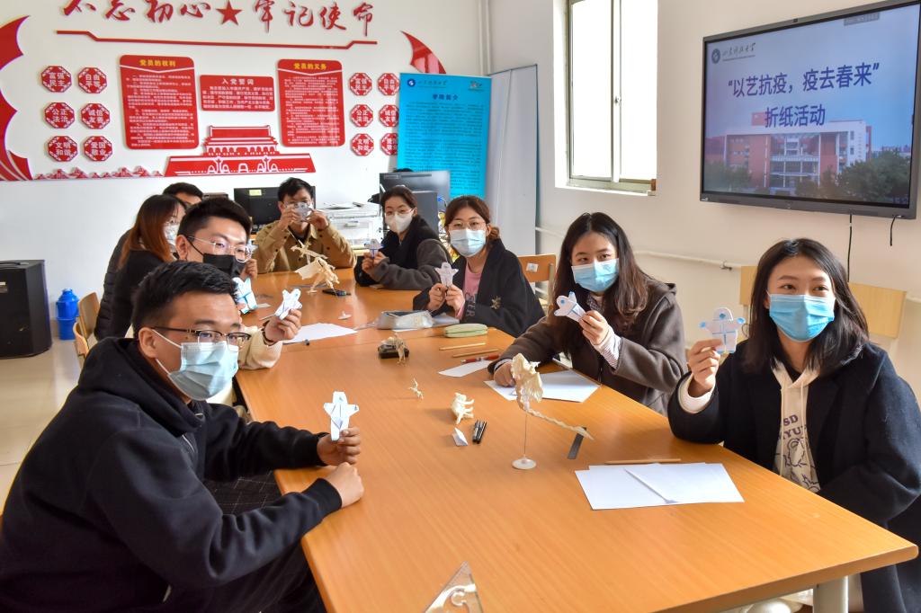 在学校各个核酸检测点,医护人员、志愿者身着白色防护服变身为抗疫“大白”,他们一直奋战在抗疫一线。虽然看不清他们的样子,也不知道他们是谁,但在这场战“疫”中,他们的无私付出却温暖着每一个人。为凝聚学生抗疫力量,表达对抗疫“大白”们的敬意和感谢,3月30日pp电子游戏官网举办“以艺抗疫,疫去春来”折纸活动。