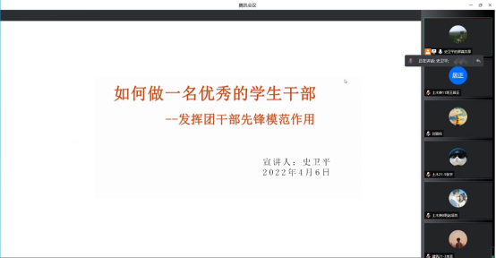 为引导青年学生进一步坚定理想信念,全面提升学生骨干的综合素质,4月6日晚,pp电子游戏官网通过线上会议形式举办“青马工程”培训班第五讲。本次讲座由学生工作办公室辅导员史卫平担任主讲,“青马工程”培训班全体学员和学生会主要干部参加讲座。