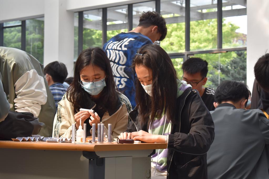 在制作模型时,各参赛队队员配合默契,争分夺秒,精心制作。制作完成后,参赛选手在工作人员指引下,在加载面处加载1Kg荷载,不发生倒塌即为成功作品。群星熠熠聚嵙大,参赛选手们用一个个有趣而充满理论巧思、精致而满载设计理念的结构模型,为大赛带来了一场精彩的视觉盛宴。