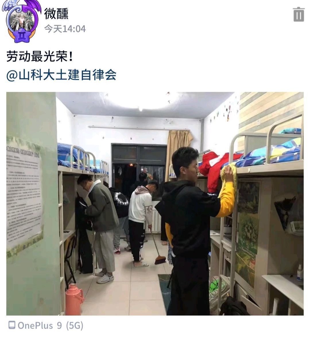 本次活动采用线上的方式举行,参加活动的同学需要在QQ空间发布劳动照片和一句体现劳动精神口号的配文,并@pp电子游戏官网自律会公众号。在活动中,同学们用积极的态度、饱满的热情,以实际行动认真完成了劳动拍照打卡活动。活动是以学生宿舍为单位参加,在规定时间内,对宿舍成员的劳动过程拍照记录。活动对拍照姿势不做要求,但需体现宿舍整体团结合作、勤于劳动的精神风貌。全体学生积极参加活动,用劳动充实节日。参与活动的同学们表示:在“五一“国际劳动节到来之际接受系统、全面的劳动教育非常必要,深刻感受到了劳动教育是最好的生活教育,要用劳动书写美好的新时代。