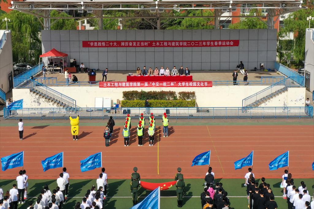 5月7日,pp电子游戏官网第一届“中交一航二杯”大学生校园文化节之2023年学生春季运动会在风雨操场隆重开幕。学院党委副书记兼副院长高静、学生工作办公室(团委)主任(书记)朱统汉及全体辅导员出席运动会开幕式,开幕式由辅导员王贝贝主持。