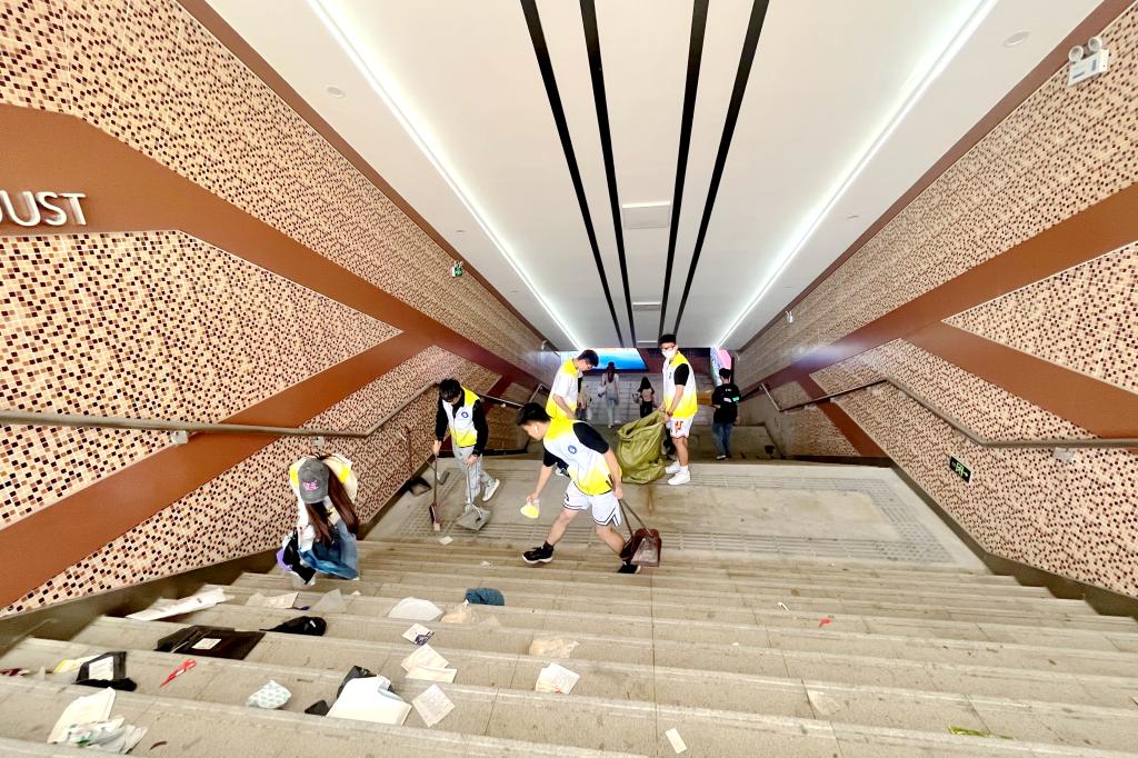 5月13日,pp电子游戏官网组织部分青年志愿者对地下通道进行了清扫,旨在进一步加强青年学生劳动价值观教育,弘扬志愿服务精神,树立良好的青年志愿者形象。活动中,志愿者带着笤帚、编织袋等工具,根据工作区域分工对地下通道进行了彻底的清扫。经过一个多小时的打扫,原先一片狼藉的地下通道焕然一新,为师生安全出行创造了一个干净整洁的卫生环境。