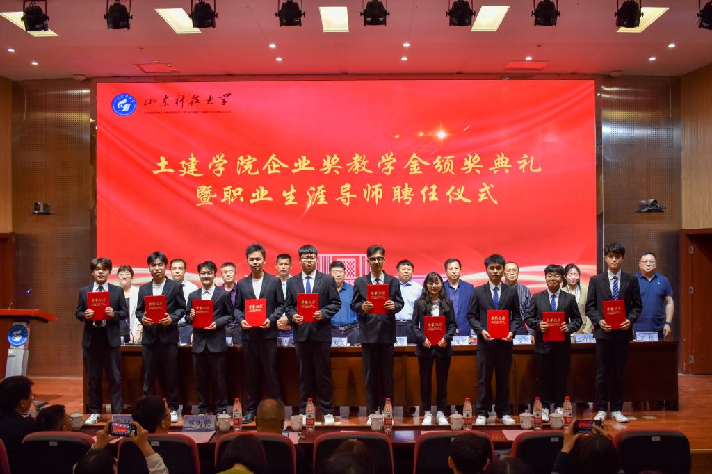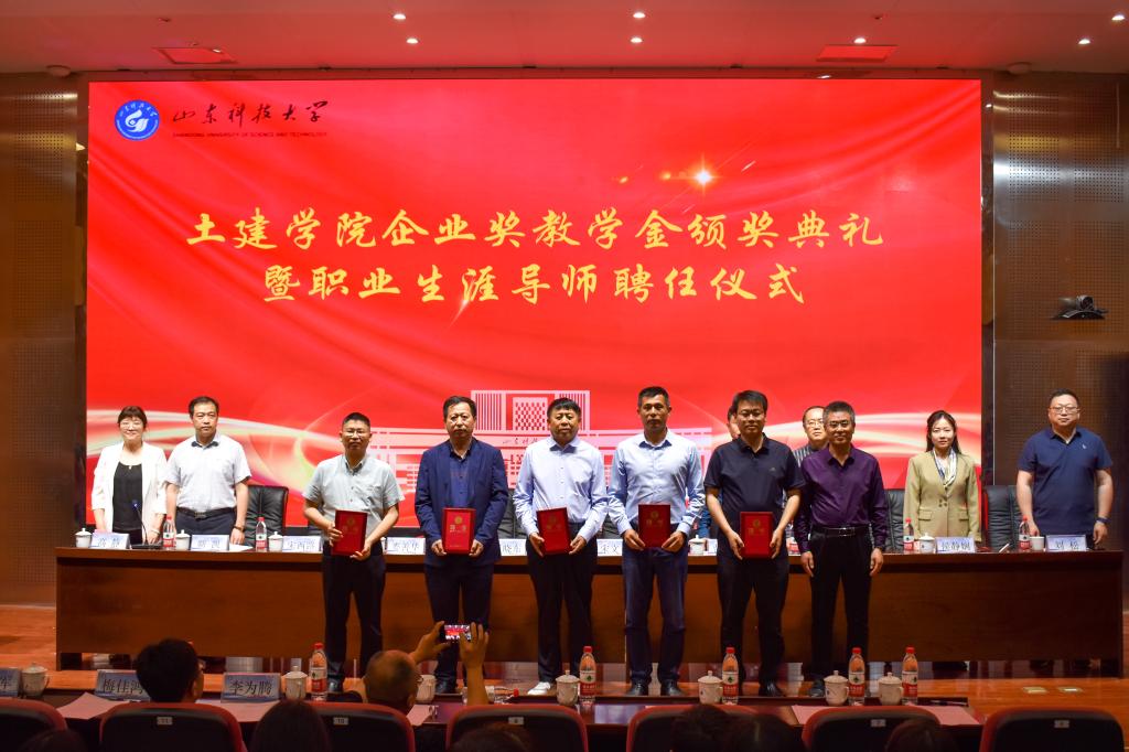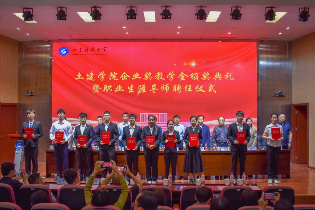 5月24日,pp电子游戏官网企业奖教学金颁奖典礼暨职业生涯导师聘任仪式在J9-144报告厅举行。烟台平安信息工程职业技能培训学校校长宋文章,日照市政集团常务副总经理娄善华、爆破公司经理焦淑君,山东省路桥集团青岛分公司党总支书记、副总经理曹建军,党总支委员、总工程师梅佳鸿,学校合作发展处处长王晓东,学生工作处副处长靳凯,校团委副书记侯静娴,研究生院副院长刘松,及pp电子游戏官网师生代表参加了本次颁奖典礼。典礼由pp电子游戏官网党委副书记高静主持。
