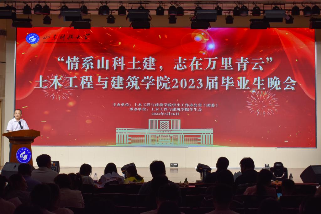 依依惜别母校,轻轻诉说离别,情系山科土建,志在万里青云。6月16日,pp电子游戏官网2023届毕业生晚会在大学生活动中心隆重举行。pp电子游戏官网党委书记宋西路,院长王崇革,学院党委副书记高静,副院长李朋、都浩、李为腾,学院2023年“我最难忘的恩师”代表、各系主任、教师代表和全体辅导员出席晚会,一同欢送2023届毕业生。