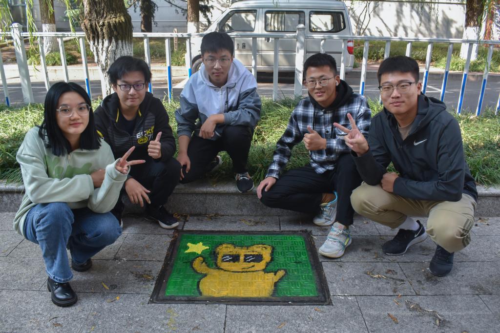 志愿者们提前准备绘画所需材料,统计井盖的数量及位置,保证活动有条不紊地进行。绘画过程中,学生们手拿绘画工具,分组协作,认真勾勒图案,专心填充色彩,利用画笔和颜料将思政、动漫等元素融入到井盖画面中,一丝不苟对待每个绘画细节。独特的创意赋予了井盖新的生命,打造出不一样的艺术世界。栩栩如生的兔子、充满正义的地球卫士、乖巧可爱的猫咪……方寸之地在艺术的渲染下已然成为一道靓丽的风景线。