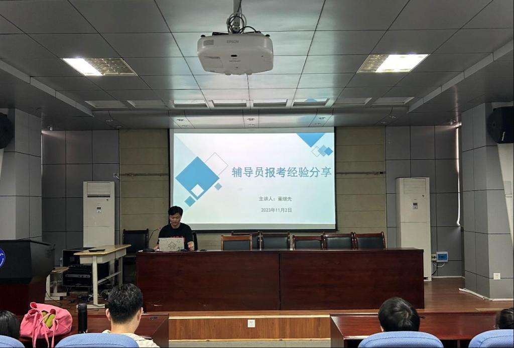为了使学生对辅导员这一职位有进一步的认识,帮助学生了解辅导员报考的相关情况。11月2日,pp电子游戏官网于J15-219举办了主题为“高校辅导员报考经验分享”的讲座,本次讲座由团委辅导员老师董继先主讲,部分研究生参加讲座。