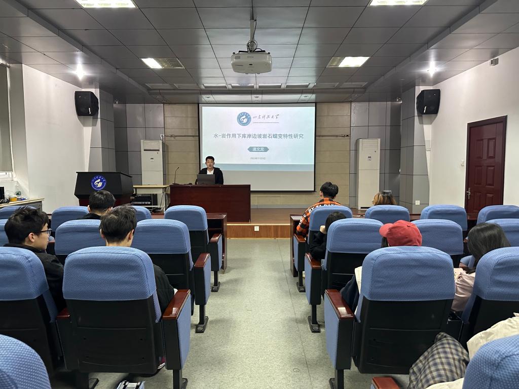 11月9日,由pp电子游戏官网校研究生会学术科技部主办,pp电子游戏官网研究生会承办的第一百二十九期微沙龙研究生讲坛在J15-219教室举办。由硕研2022级2班逄文龙主讲,主题为“水-岩作用下库岸边坡岩石蠕变特性研究”。此次讲座为广大研究生们带来了一场精彩的学术盛宴。