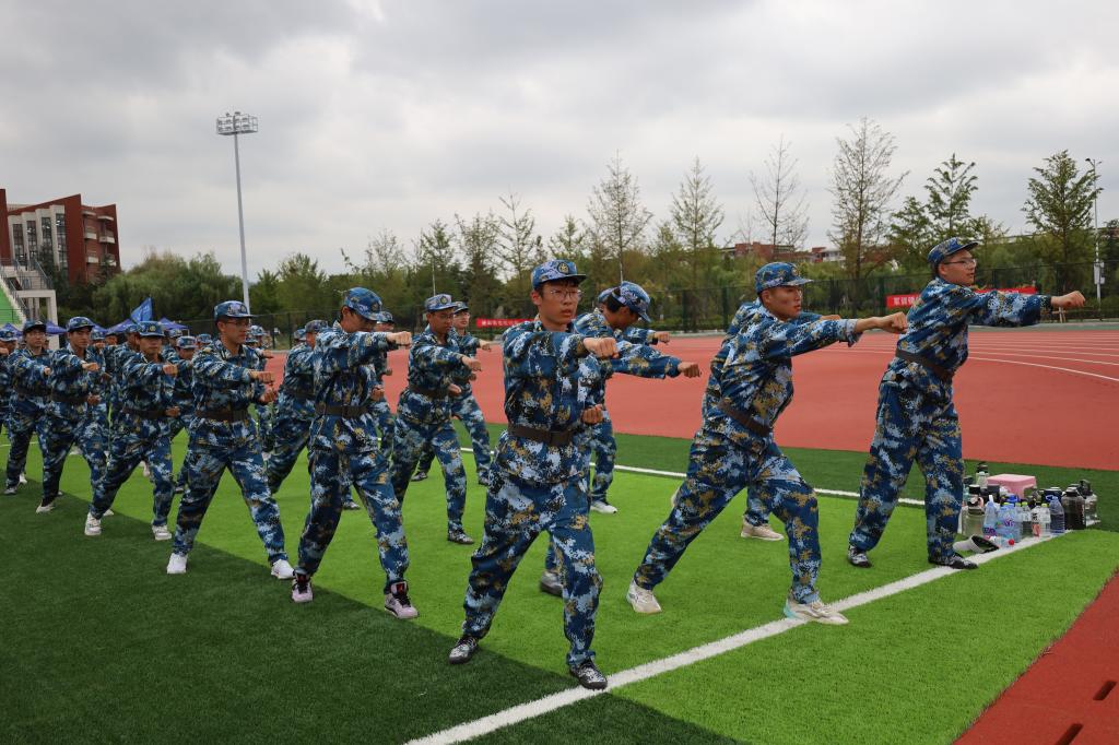 今天的主要训练内容是军体拳。在教官一声令下,同学们步伐坚定,整齐有序,动作干脆利落,每一次挥拳都充满力量,每一次踢腿都准确无误。这不仅是对身体素质的挑战,更是对心理意志的磨练。一击一打,踏出了青春的风采;口号嘹亮,喊出了时代的强音。