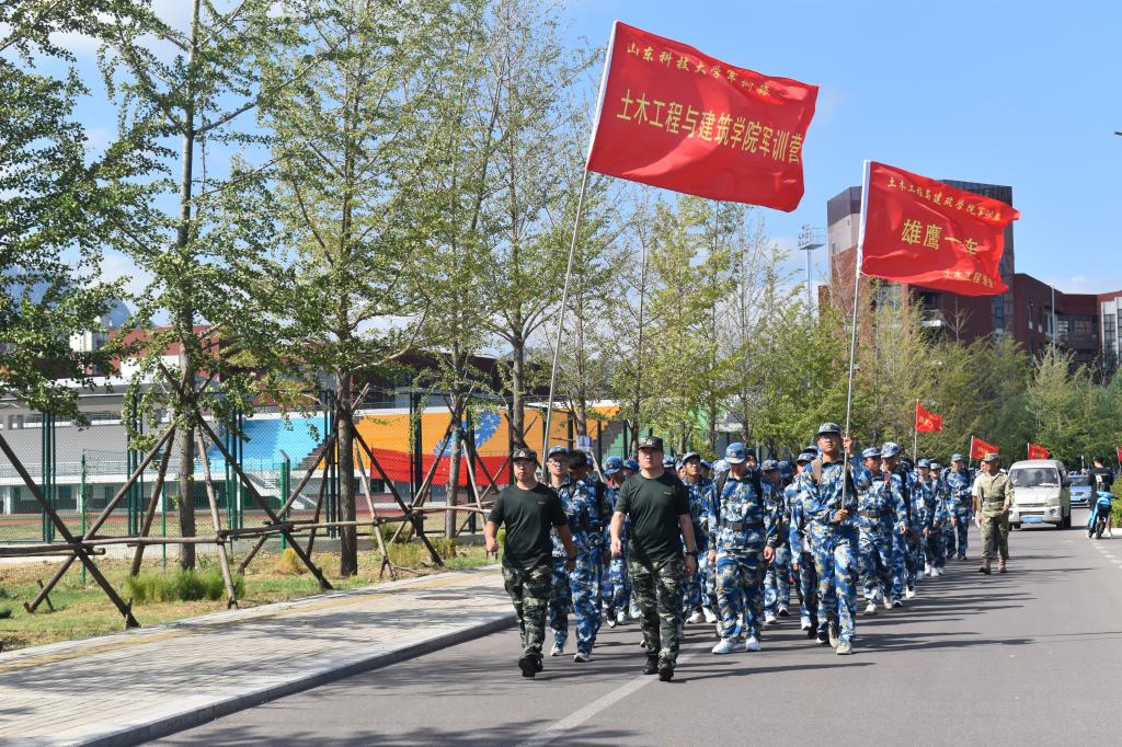 9月9日,pp电子游戏官网2024级本科新生在军训教官的带领下进行了徒步行军拉练,学院党委副书记、副院长高静,学生工作办公室主任、团委书记王贝贝,新生辅导员李沛东陪同新生参与了此次拉练。