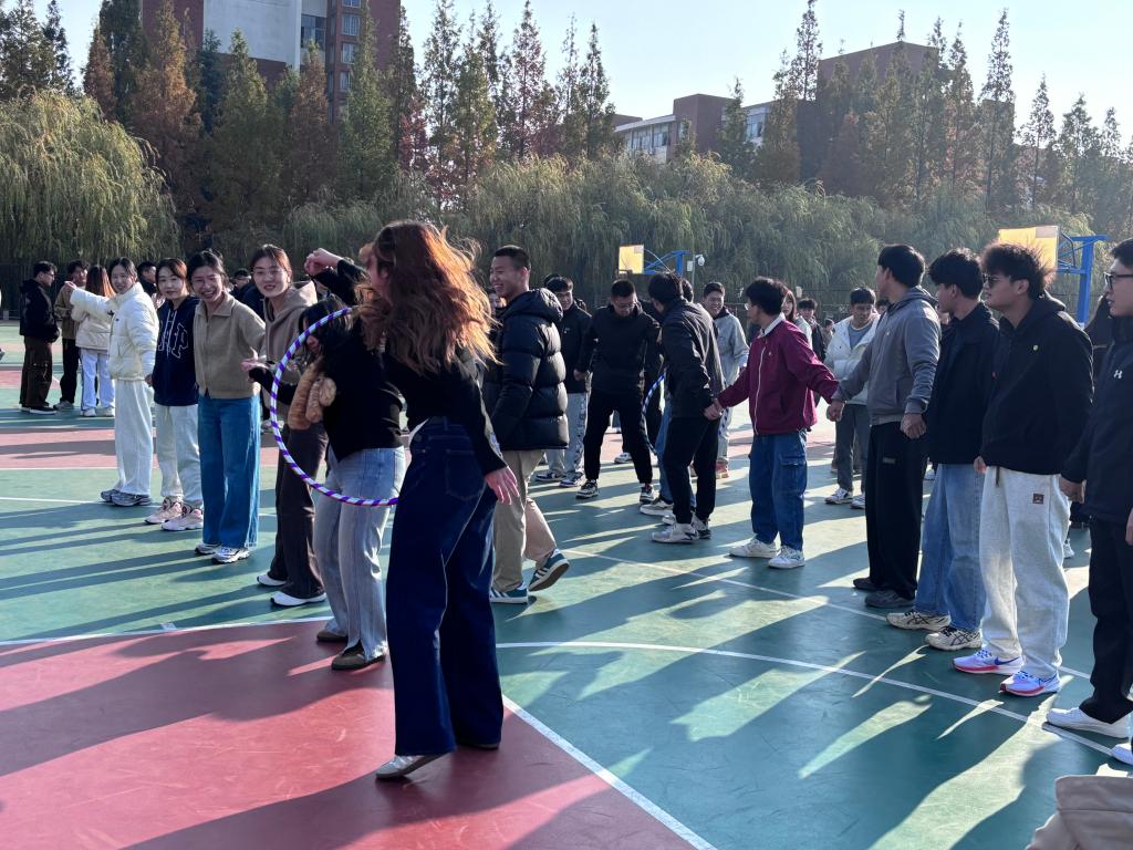 本次趣味运动会共设袋鼠跳、穿越时空、珠行万里、趣味投壶、正话反说、传声筒以及附加项目凑钱花、老鹰抓小鸡、丢手绢等九个项目。袋鼠跳项目中,选手们化身活泼的袋鼠,在赛道上奋力跳跃,展现出无限活力;穿越时空项目则要求选手们敏捷地穿越呼啦圈,考验着他们的反应速度和身体协调性;珠行万里项目里,队员们齐心协力,通过默契的配合将小球顺利传递至终点;趣味投壶项目让大家感受到了传统文化的魅力,正话反说和传声筒项目则充分挑战了选手们的思维反应能力。附加项目凑钱花、老鹰抓小鸡、丢手绢更是勾起了大家的童年回忆。这些项目不仅丰富了运动会的内容,更增进了同学们之间的友谊和团队合作精神。