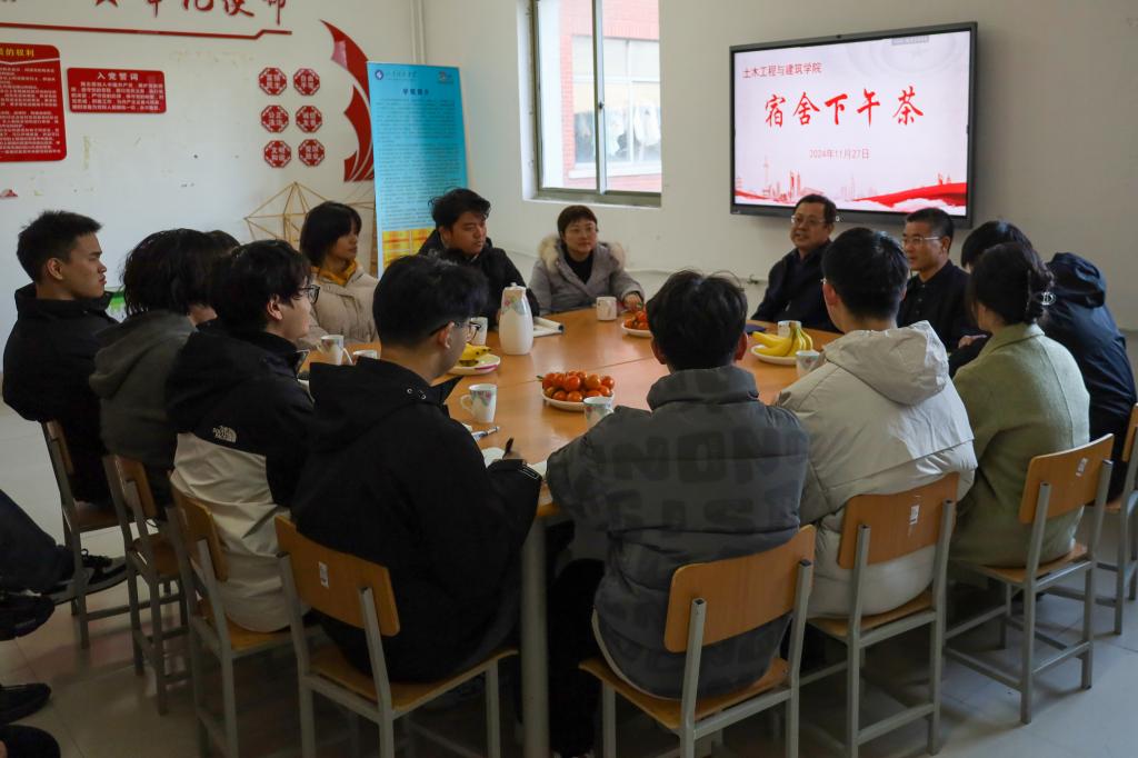 11月27日下午,校党委统战部常务副部长王永君做客pp电子游戏官网“宿舍下午茶”,与所联系班级土木工程2022-1班的同学们开展了一场亲切且深入的座谈交流活动。学院党委书记宋西路,党委副书记、副院长高静,学工办主任、团委书记王贝贝,辅导员老师李宏宇陪同参加。