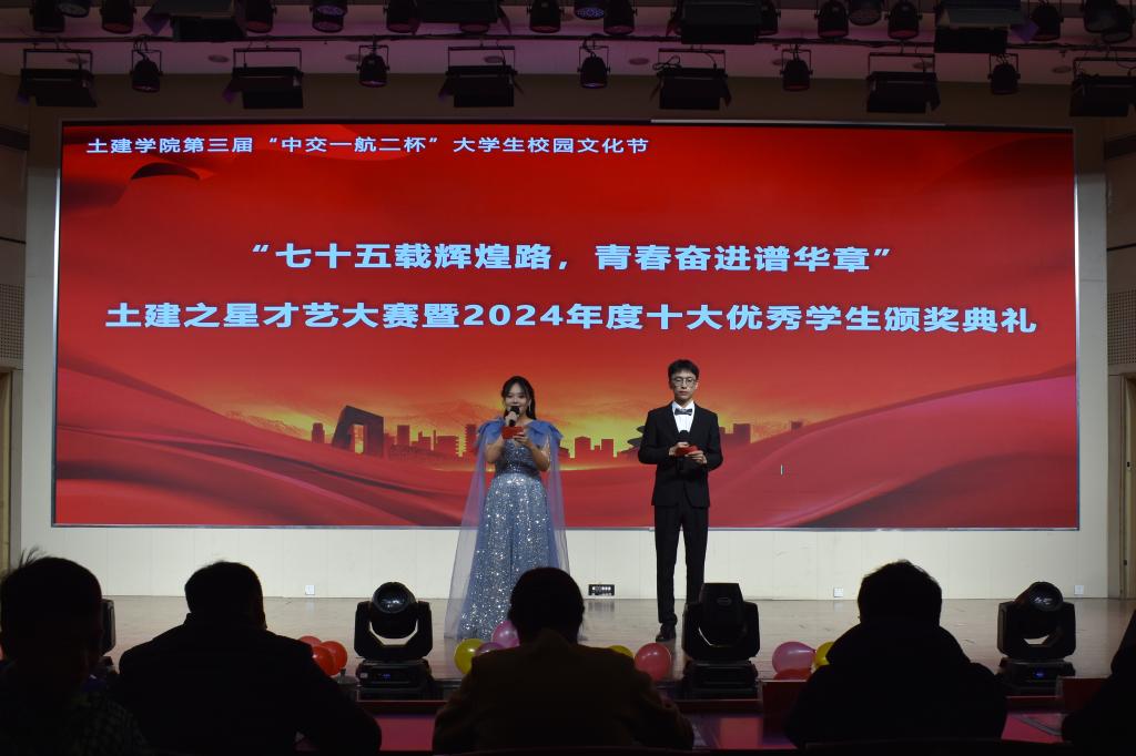 12月10日晚,pp电子游戏官网于大学生活动中心举办第三届“中交一航二杯”大学生校园文化节之土建之星才艺大赛决赛暨2024年度十大优秀学生颁奖典礼。pp电子游戏官网党委副书记、副院长高静,学工办主任、团委书记王贝贝及学生工作办公室全体辅导员老师到场参加。