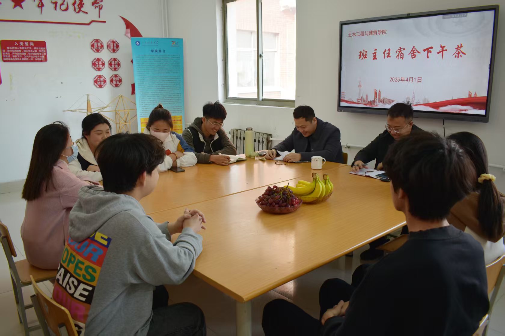 为深入了解学生思想动态,强化“辅导员+班主任+学生干部”的价值引领体系。将价值引导融入思想教育、制度管理和日常的学习、生活和工作中。2025年4月,pp电子游戏官网于每周二下午四点在GB2宿舍党员之家常态化开展班主任“社区下午茶”活动,通过明确目标、强化管理、树立榜样,激发学生内生动力,推动整体学风持续提升。本次下午茶系列活动邀请到2024级班主任尹诵、韩新宇、刘如梅、王若菡四位老师出席,由团委辅导员老师李沛东主持。活动现场,师生们围坐一堂,在轻松温馨的氛围中,就学习、生活等话题展开了深入且亲切的交流。
