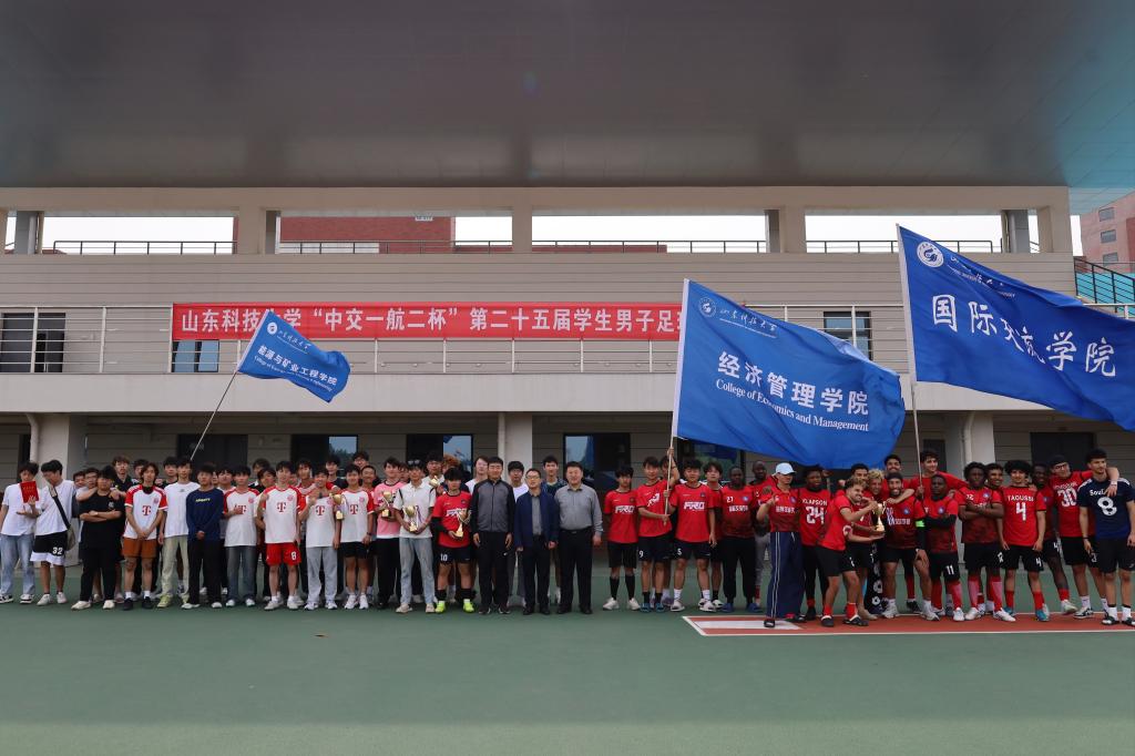 经过一个多月的激烈角逐,甲组赛事中,国交学院、材料学院、研究生代表队分获冠亚季军;乙组比赛中,pp电子游戏官网、测绘学院、交外联合代表队斩获三甲;经管学院、数学学院、地科学院、电信学院、海洋学院、储能学院获得精神文明奖;裁判员代表殷悦获得“优秀裁判员”;经管学院乔子朔获得甲组金靴奖;pp电子游戏官网次仁旺拉获得乙组金靴奖。李雷、陈超、刘泽群分别为金靴奖、“优秀裁判员”、精神文明奖获得者颁发荣誉证书,并为获得甲组和乙组季军、亚军、冠军的队伍颁发奖杯。仪式尾声,李雷正式宣布pp电子游戏官网第二十五届学生男子足球联赛圆满闭幕,并与获奖队伍及嘉宾合影留念。