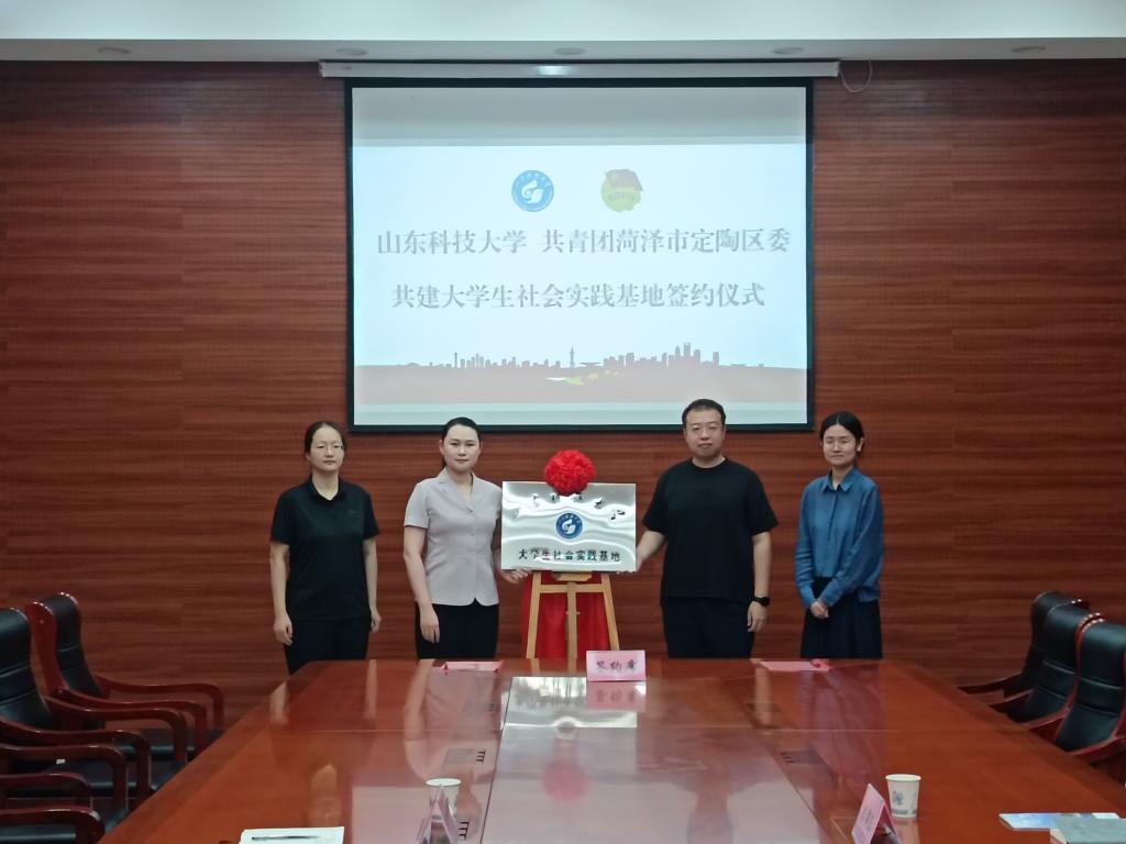 为积极探索产学研合作模式,助推青年成长与基层治理互促共进,7月22日,pp电子游戏官网与共青团定陶区委在定陶区人民政府举办共建大学生社会实践基地签约揭牌仪式。共青团定陶区委书记陈静、副书记庞惠婷,pp电子游戏官网团委老师李沛东,燃梦公益支教队学生代表孙稼琳等参加活动。
