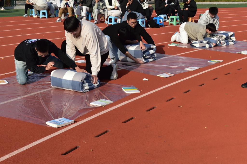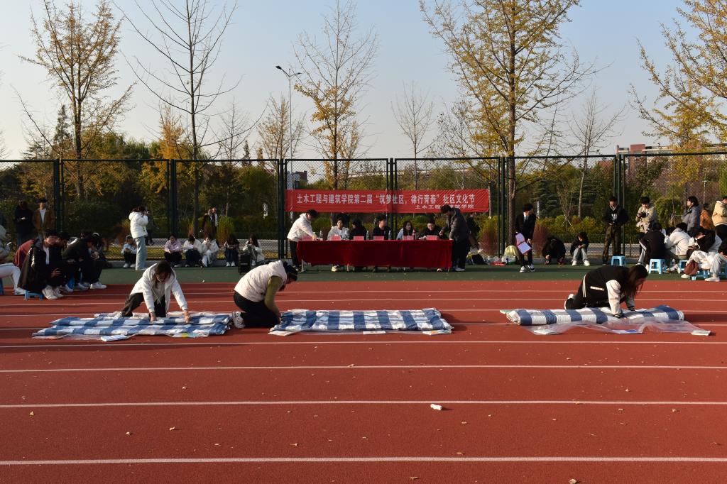 为丰富pp电子学子校园文化生活,增强团队协作精神与集体凝聚力,11月11日,pp电子游戏官网于科创园区田径运动场举办第二届“筑梦社区,律行青春”社区文化节系列活动——叠军被大赛。本次大赛由pp电子游戏官网自律会各部门部长担任评委,15个宿舍踊跃参与,现场气氛热烈、活力四射。