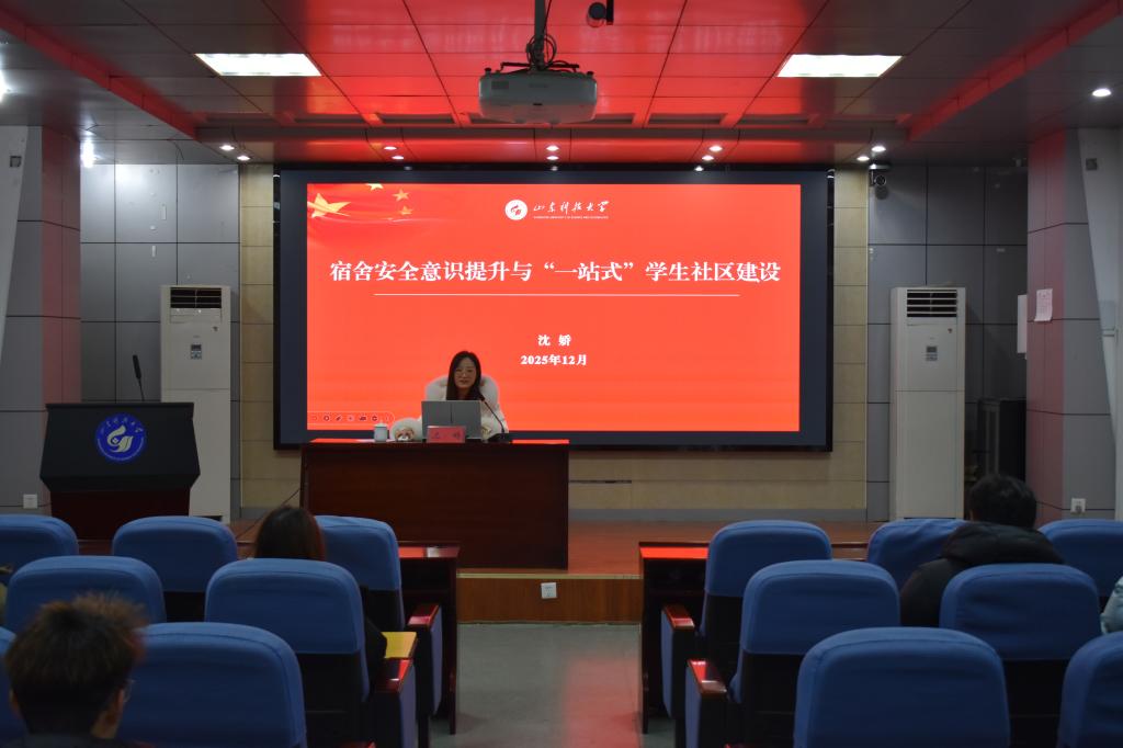 为强化宿舍安全意识,明晰“一站式”学生社区建设的核心方向,pp电子游戏官网沈娇老师于12月22日在J15-219开展主题为“宿舍安全与‘一站式’学生社区建设”专题讲座,24、25级团支书、班长、团支部委员及学生会主干到场聆听学习。
