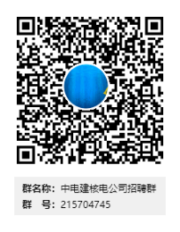 3.QQ群:应聘人员申请加入“中电建核电公司招聘群”,QQ群号:215704745,加群申请格式:毕业学校+专业+姓名。