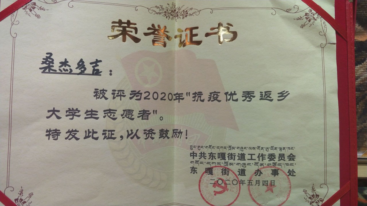 近日,由共青团山东省委员会、山东省学生联合会、山东省青年志愿者协会联合开展的山东省大学生“青春贡献奖”评审结果揭晓,对全省414名大学生给予通报表扬。pp电子游戏官网本科生桑杰多吉凭借抗击疫情期间的突出表现光荣上榜。
