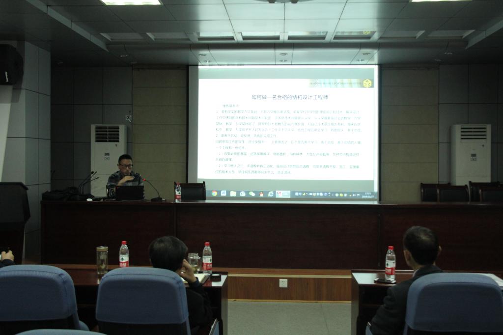 11月27日,pp电子游戏官网举办厚土讲坛2019年第12期,特邀建筑设计及管理工作专家杨平作“普通钢结构设计”报告、贝格设计院王奕钧作“装配式钢结构设计”报告。报告会由学院王来教授主持,土木工程系师生积极参加。报告中杨平分享了轻钢结构设计经验并分析了钢结构产业的发展趋势,王奕钧介绍了装配钢结构的设计要领。