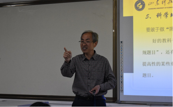 讲座上,赵文才教授用轻松的语言营造了一个愉悦的气氛,他结合自身多年的数学教学经验,列举了大量生动有趣的实例,阐明了同学们在数学学习中遇到的主要问题,从不同的角度与同学们探讨了对数学的认识,着重强调了数学的重要性以及在专业课学习中的应用性,提出了“专注数学”是学好数学的第一要务,成功与否的关键是抓住基本概念,想要掌握定理的本质要先看懂定理的证明等学习数学的方法与技巧。最后,赵文才教授对同学们提出的疑惑和问题进行了细致地解答,并对同学们在数学方面的学习给予鼓励。
