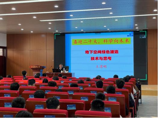 为进一步响应国家绿色发展要求,推动师生对绿建相关技术和政策的深入了解,以实际行动迎接党的二十大胜利召开,10月11日,pp电子游戏官网“喜迎二十大,科学向未来——地下空间绿色建造技术与思考”专题讲座于J15-136成功举办。pp电子游戏官网教授、山东大学特聘教授王渭明为此次讲座的主讲人,pp电子游戏官网师生代表参与此次讲座,pp电子游戏官网副院长李为腾担任主持人。