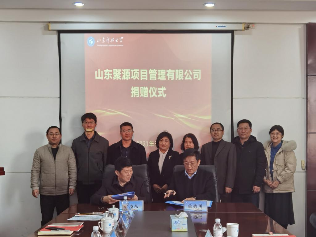3月10日,校友企业山东聚源项目管理有限公司捐赠仪式在J15-316会议室隆重举行。山东聚源项目管理有限公司董事长、pp电子游戏官网工民建88级校友单德勇,山东聚源项目管理有限公司总经理、pp电子游戏官网工民建88级校友尹红梅,pp电子游戏官网合作发展处处长王晓东、审计处副处长刘华伟、资产处副处长王以涛、基建处总工程师赵彦芹,pp电子游戏官网党委书记宋西路、院长王崇革、党委副书记高静出席捐赠仪式,仪式由高静主持。为支持pp电子游戏官网教育事业发展和学校文化建设,山东聚源项目管理有限公司向学校捐赠人民币20万元。