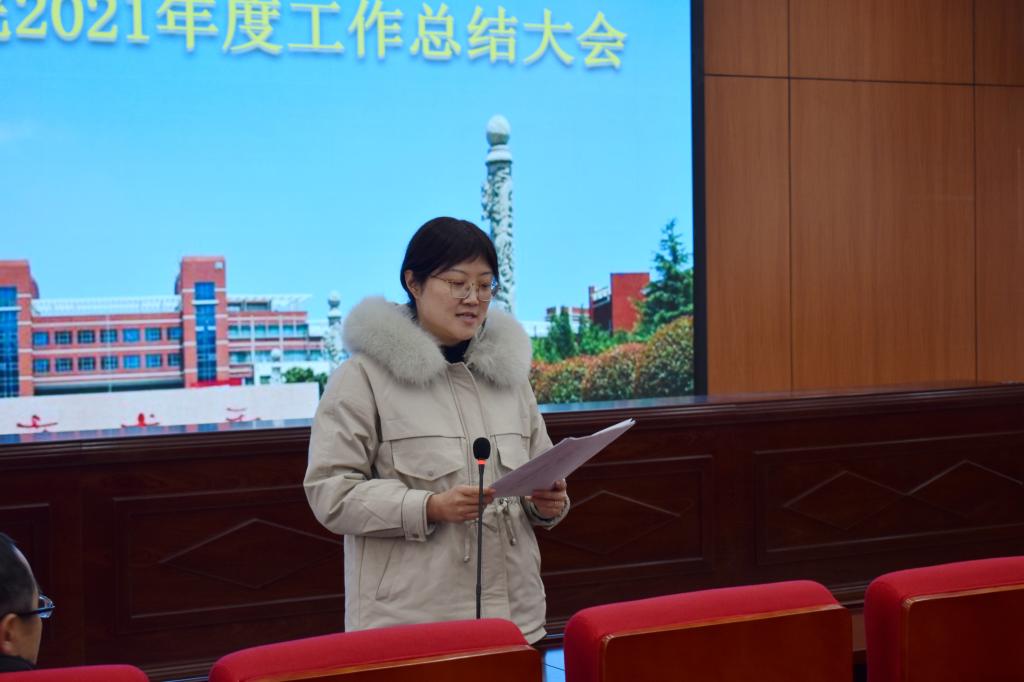 会上,王崇革全面回顾了学院在党建与思想政治、本科教学与专业建设、学科建设与研究生培养、科学研究与实验室建设、师资队伍建设、社会服务与校友工作、学团工作等方面所取得的突出成绩,总体上实现了“十四五”开好局、起好步的预期目标;向全体教职工公布了2021年度学院各项经费分配使用情况;并对年度考核、聘期考核进行了政策解读,向全体教职工传达了学校2021年绩效工资分配会议精神及学院2021年绩效工资实施办法。