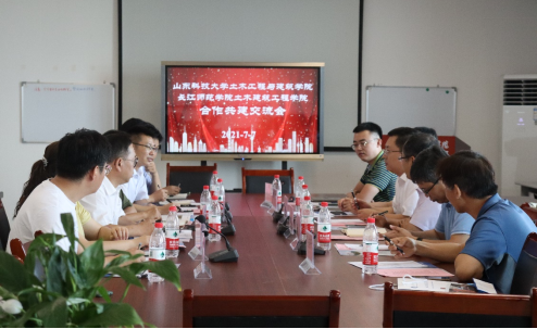 7月7日,pp电子游戏官网院长王崇革,副院长王刚、李朋、都浩,建筑工程系主任王飞,地下工程系主任吴燕开一行赴长江师范学院进行调研交流。长江师范学院副校长袁革、发展规划处处长李伟、土木建筑工程学院党委书记王正平、院长汪时机、副院长孙华银及相关系主任等接待了王崇革一行。交流会由汪时机主持。
