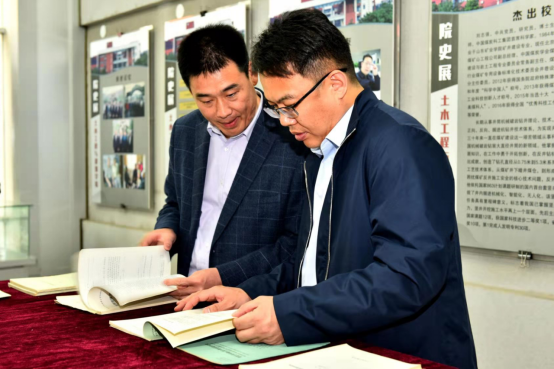 随后,杨小林一行来到pp电子游戏官网,参观了陈子荫先生塑像、pp电子游戏官网院史展,翻阅了陈子荫先生生前保留的许多著作、论文、手稿等原件。王崇革为来宾介绍了学院的发展历程、学科和专业建设及杰出校友。来宾对以陈子荫先生为代表的冯豫、周文安、胡峰等老一辈专家学者集体对山科大矿井建设学科发展奠定了坚实的基础表达了敬意。之后,杨小林一行深入学院土木工程实验中心调研。