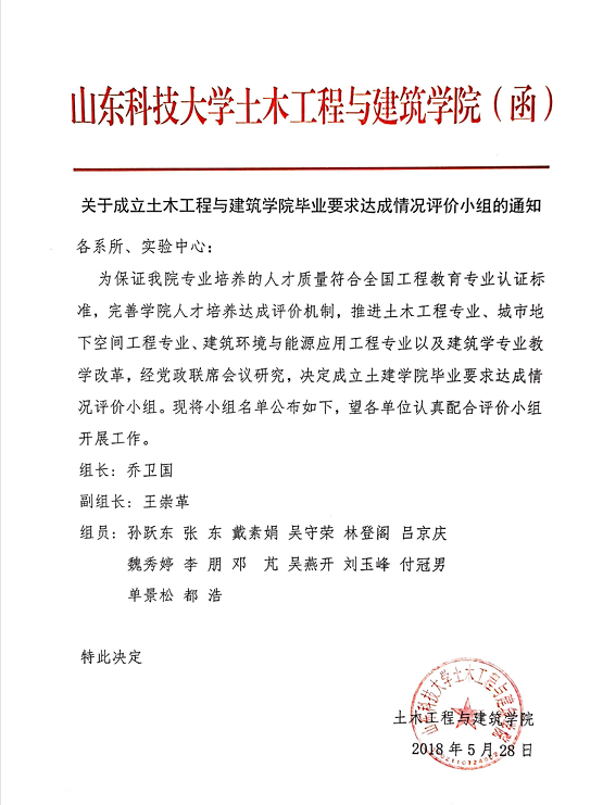 关于成立pp电子游戏官网毕业要求达成情况评价小组的通知