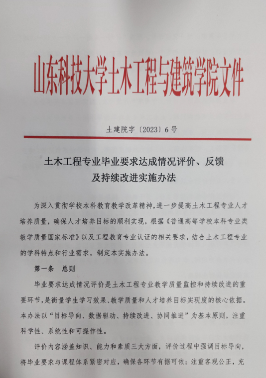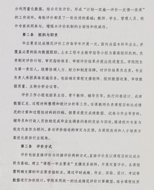 土木工程专业毕业要求达成情况评价、反馈及持续改进实施办法